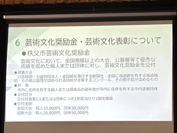 「令和7年度中に“芸術文化表彰規定”も策定したい。」とのご提案もあって、ちゃんと“振興”についての未来も見据えていらっしゃいました。