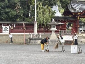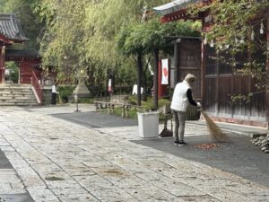 満月の秩父神社朝掃除。