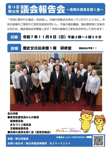 秩父市議会12月定例会、文教福祉委員会に付託された議案は5件。