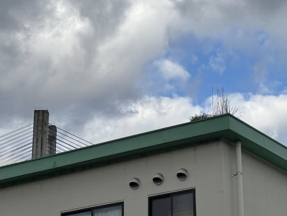 放っておくことで別な不具合が発生する可能性もあるため、屋根の点検も兼ねて、草の撤去をお願いしたところ、担当課から「清掃作業の予定が決まりました。」との連絡をいただき、事前に伺ってみました。