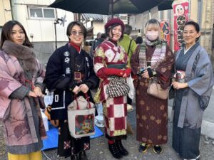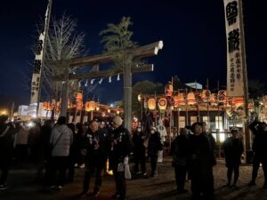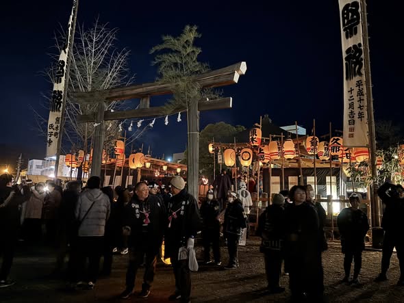 厳寒の中、亀の子石の前では神事やお神楽が、4町の屋台では踊りが奉納されます。