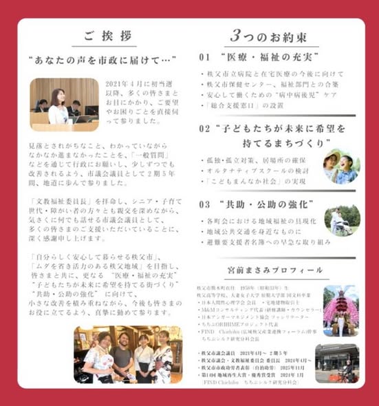 福祉・介護・医療・教育のあり方について特別な思いがあり、「3つのお約束」も“文教福祉”関係が中心になりました。