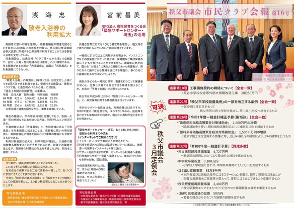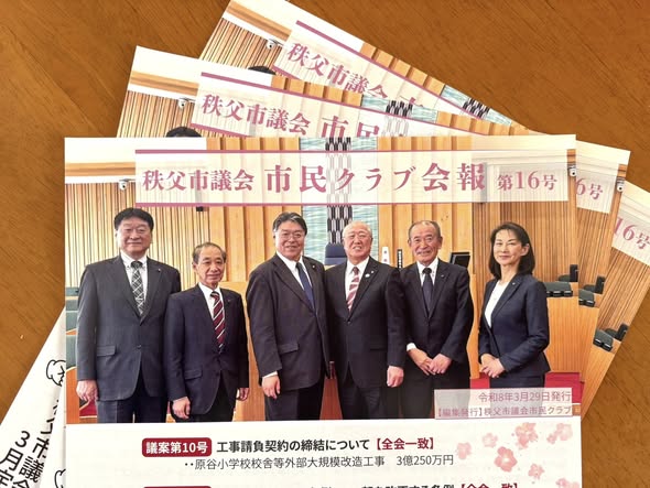 今朝の新聞に「秩父市議会・市民クラブ会報 第16号」が折込されました。