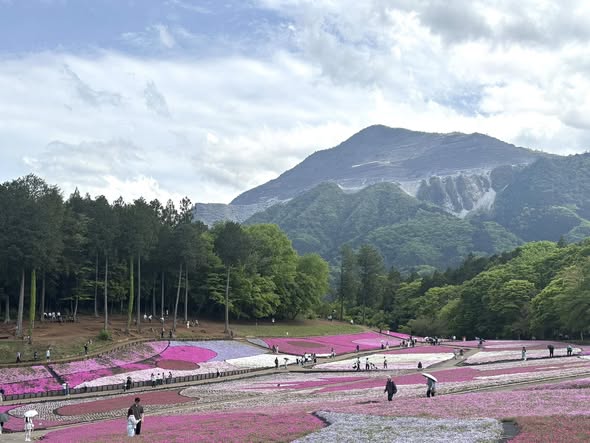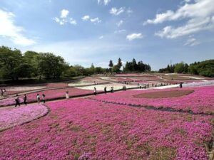 午後、歩いて芝桜の丘へ。連休前の平日なのに賑やかでした。